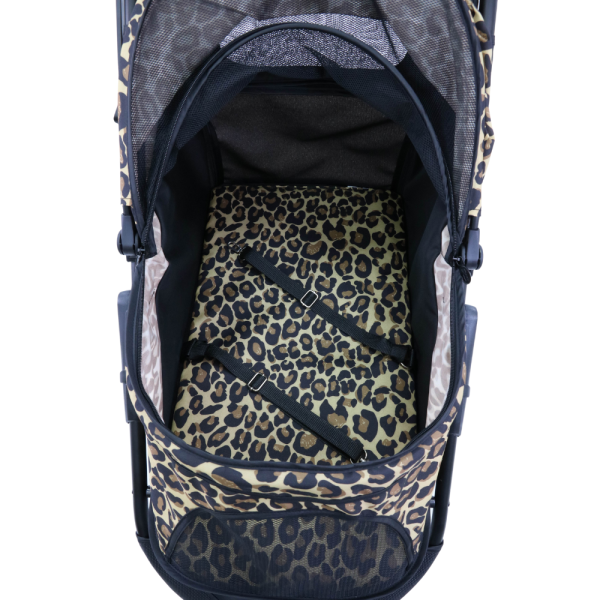 Der Allure Cheetah Hundebuggy ist ein robustes und vielseitiges Transportmittel für Ihren Hund. Er bietet Ihrem Tier optimalen Schutz und Komfort auf jedem Spaziergang, wenn Ihr Liebling eine Pause braucht. Die solide Verarbeitung und die hochwertigen Materialien garantieren eine lange Lebensdauer. Der Vorderradbereich ist leicht gefedert und bietet so ein angenehmes Fahrgefühl. Zwei Sicherheitsleinen an der Innenseite des Hundebuggys sorgen dafür, dass Ihr Hund nicht aus dem Wagen springen kann. Das klappbare Verdeck schützt Ihr Tier vor Sonne, Wind und Wetter. Hintere Feststellbremsen halten den Wagen sicher an seinem Platz. Das doppelt 360° schwenkbare Vorderrad ermöglicht ein agiles Fahrverhalten. Die weiche Innenauflage ist bequem und macht die Innenfläche für Ihren Hund richtig kuschelig. Die robusten Lüftungsgitter sorgen für reichliche Luftzirkulation im Inneren des Wagens. Der Allure Cheetah Hundebuggy lässt sich leicht zusammenklappen und transportieren. Ein abnehmbarer Imbisshalter ist sehr praktisch für den Snack unterwegs.