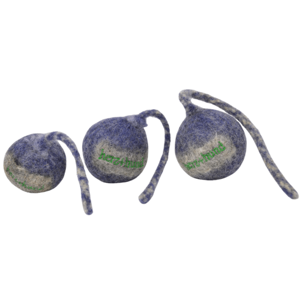 Nachhaltiger Schleuderball blau für Hunde aus Bio-Wollfilz - 100% schadstofffrei