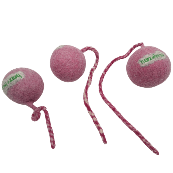 Nachhaltiger Schleuderball pink für Hunde aus Bio-Wollfilz - 100% schadstofffrei