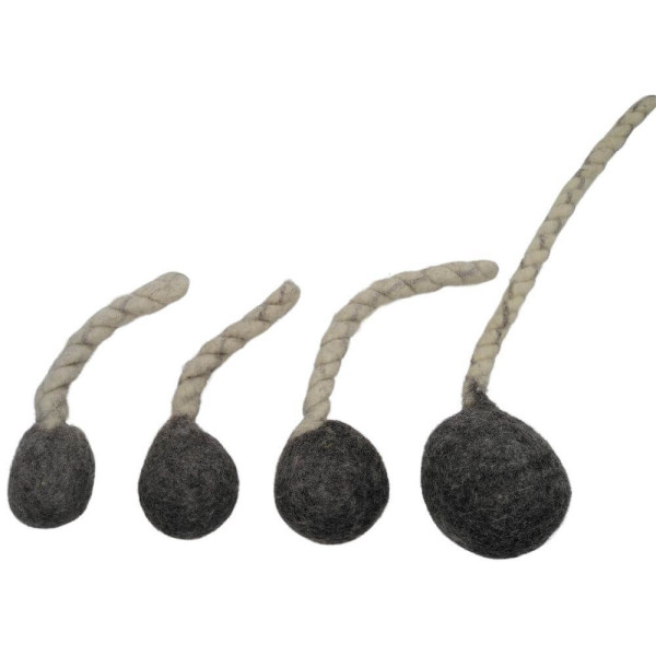Nachhaltiges Hundespielzeug Schleuderball Robust grau aus Bio-Wollfilz - 100% schadstofffrei
