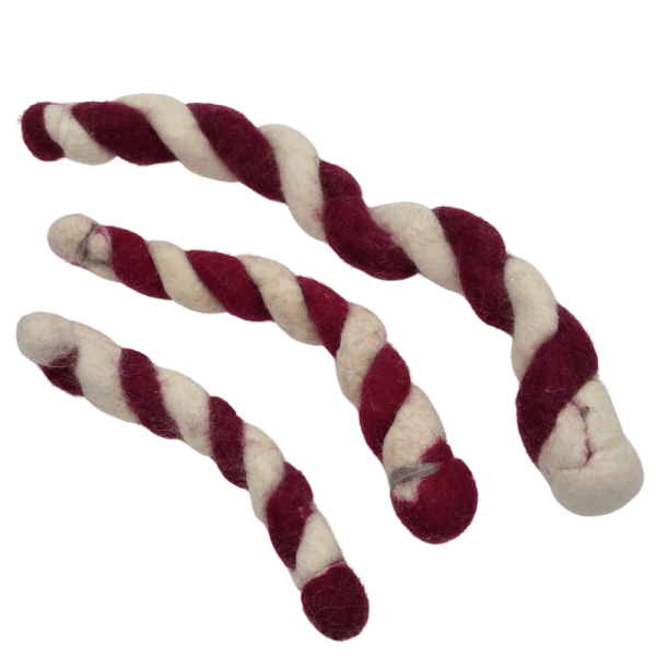 Nachhaltiges Hundespielzeug Zergel rot weiß aus Bio-Wollfilz - 100% schadstofffrei