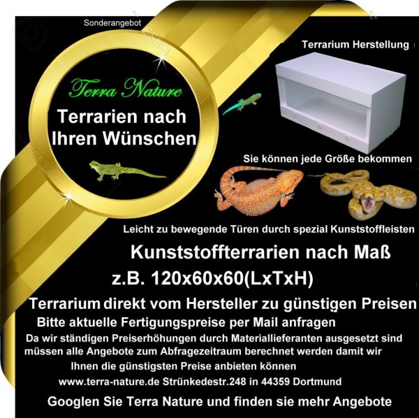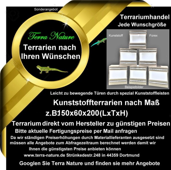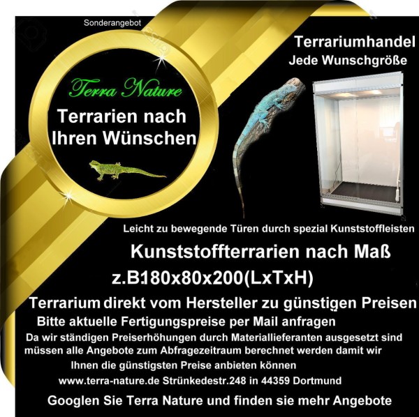 Wir haben die Möglichkeit jede gewünschte Größe herzustellen - fragen Sie uns nach Ihrem Wunsch-Terrarium !!